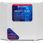 INFINITY 12000 ‒ электронный стабилизатор на основе 16-ступенчатого автотрансформатора с тиристорным управлением. Обеспечивает точность стабилизации на уровне ± 4,3 % и рассчитан на непрерывную работу в промышленных и бытовых сетях электроснабжения, с номинальным фазным напряжением 220 вольт, частотой 50 герц.