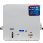 INFINITY 35000 ‒ электронный стабилизатор на основе 16-ступенчатого автотрансформатора с тиристорным управлением. Обеспечивает точность стабилизации на уровне ± 4,3 % и рассчитан на непрерывную работу в промышленных и бытовых сетях электроснабжения, с номинальным фазным напряжением 220 вольт, частотой 50 герц.