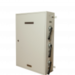 Внутри щита расположены клеммные блоки для подключения его к сети, стабилизаторам и потребителю. На боковой стенке щита расположены ручные рубильники байпаса, индикаторы наличия входного напряжения, а также трехпозиционный переключатель для выбора фазы питания контактора нагрузки. Щит можно навесить на стену.
